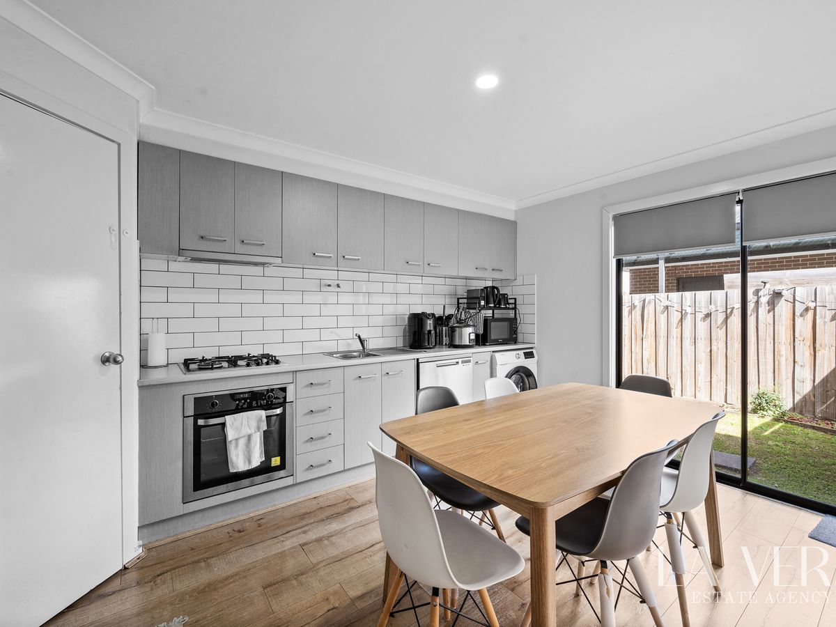 The modern kitchen is fitted with quality stainless steel appliances. Light-filled living spaces create a welcoming atmosphere throughout. Additional highlights include a secure single-car garage, split-system heating and cooling.